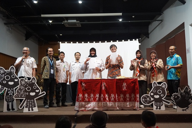 Sebagai bagian dari acara hari ini, juga diselenggarakan prosesi penandatanganan MoU antara Daud Nugraha (Founder Aniwayang Studio) dan Sri Kusumawati (Kepala Unit Pengelola Museum Seni), sekaligus penyerahan resmi koleksi wayang kulit karakter Desa Timun untuk menjadi bagian dari koleksi permanen Museum Wayang.